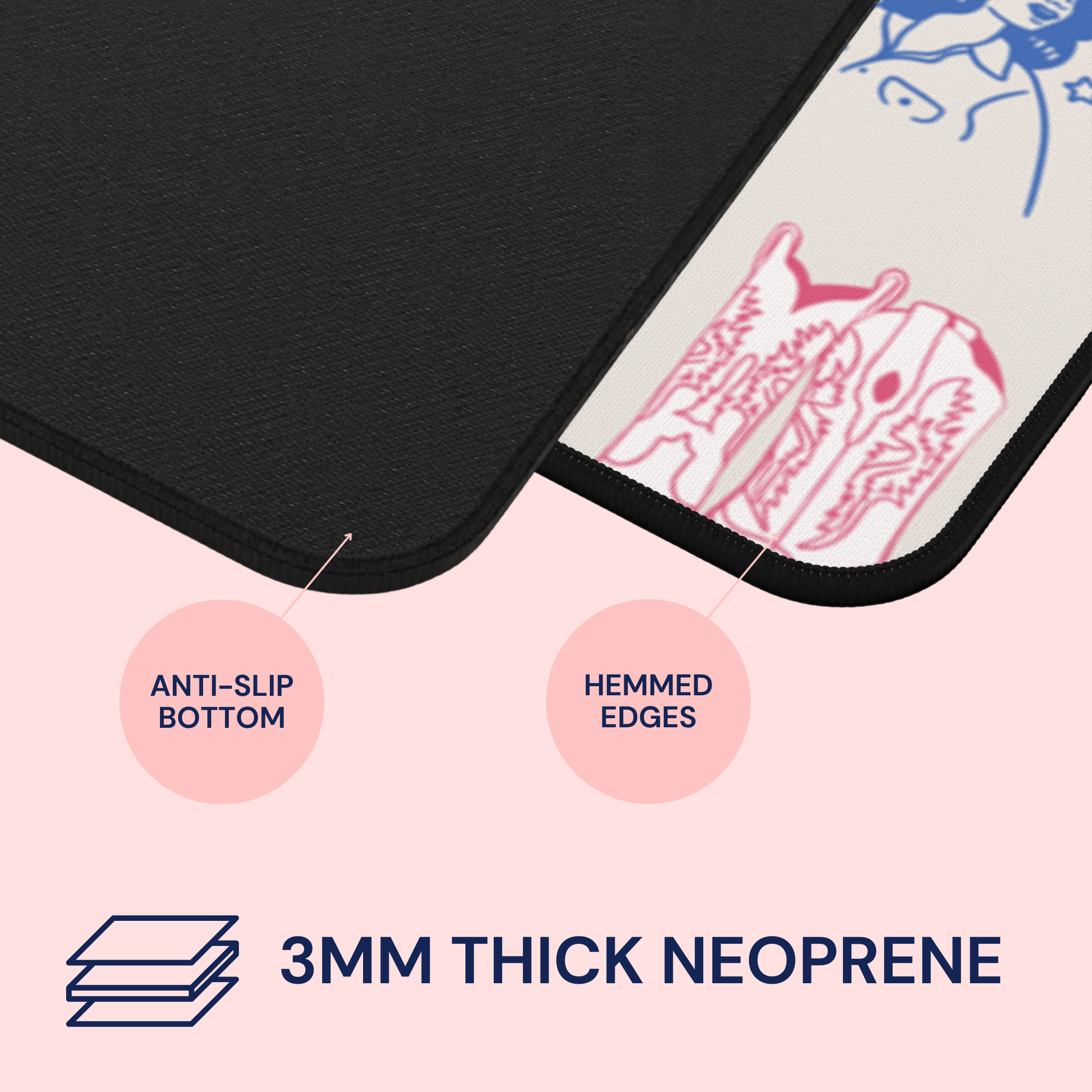 This fully customizable desk mat is perfect for that extra personal touch at work or in your home office. Made of 3mm thick neoprene material, it has an anti-slip backing and a hemmed edge for durability and stability. Pick it in three sizes 12” × 18”, 12” × 22” & 32" × 16", and glow up your workspace.