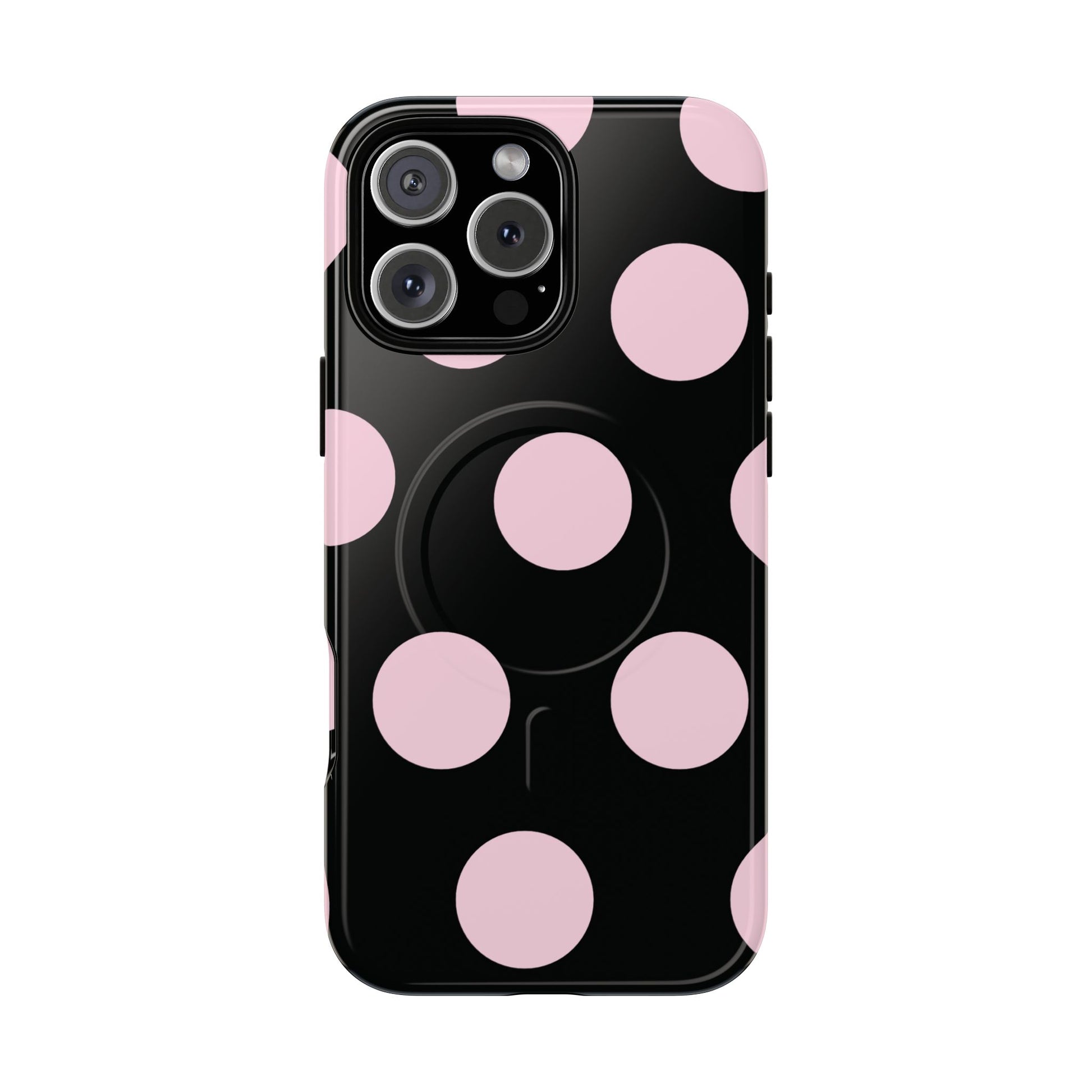 Pink on Black Large Polka Dots