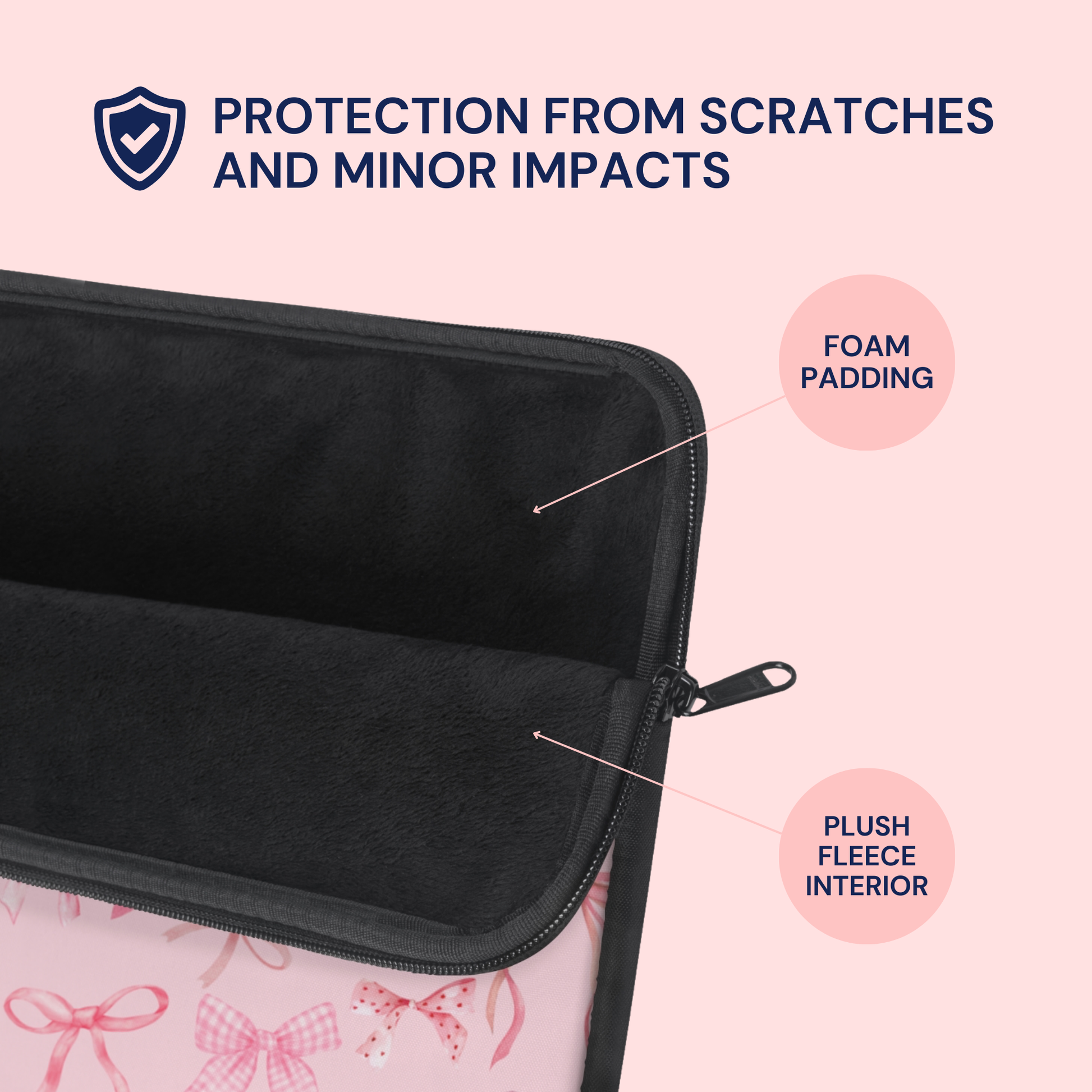 Carry your laptop with style! This high-quality sleeve is available in three sizes to protect your laptop from scratches and minor impacts. Printed on one side with a black backside, edging, and zip, it's an elegant and stylish companion from day to day.