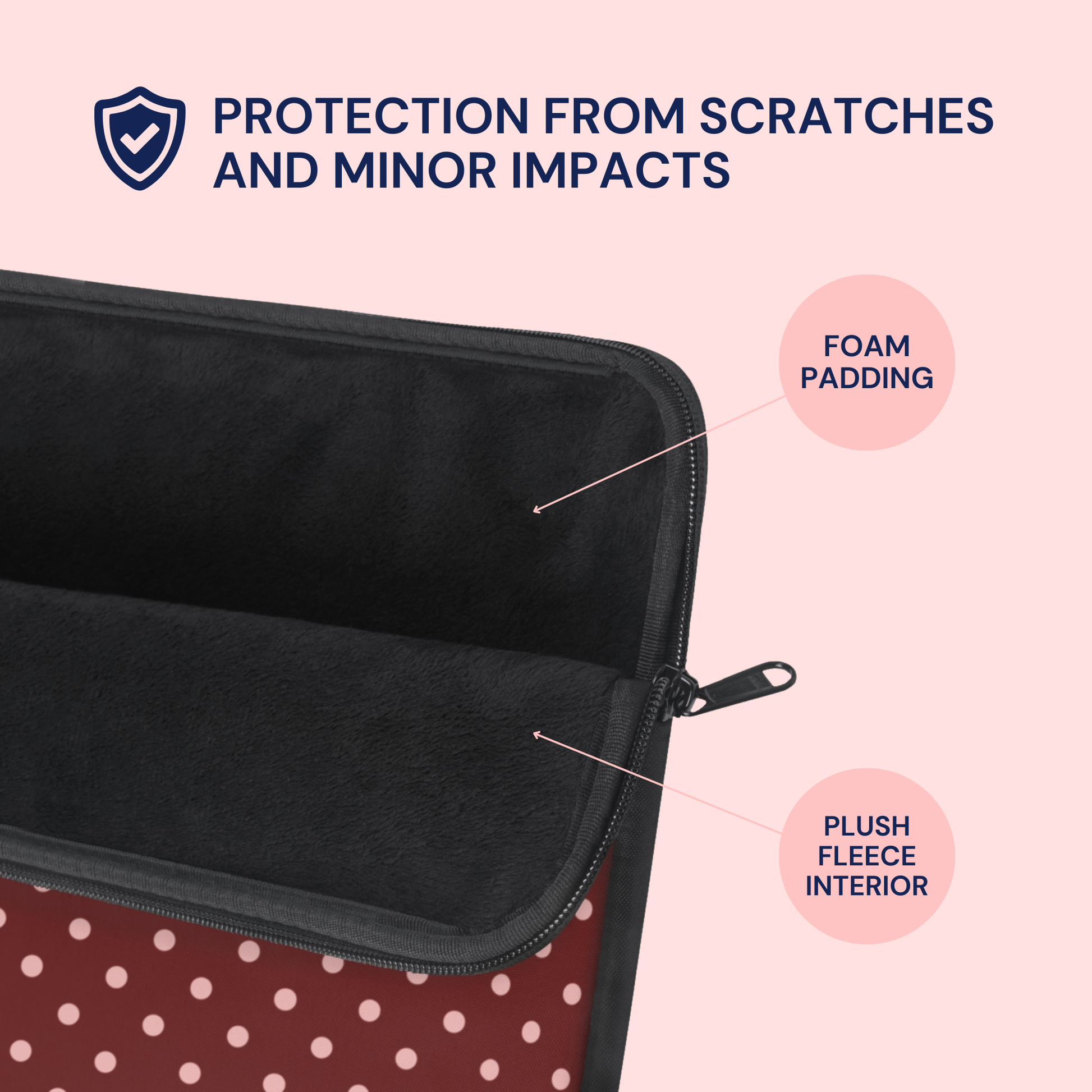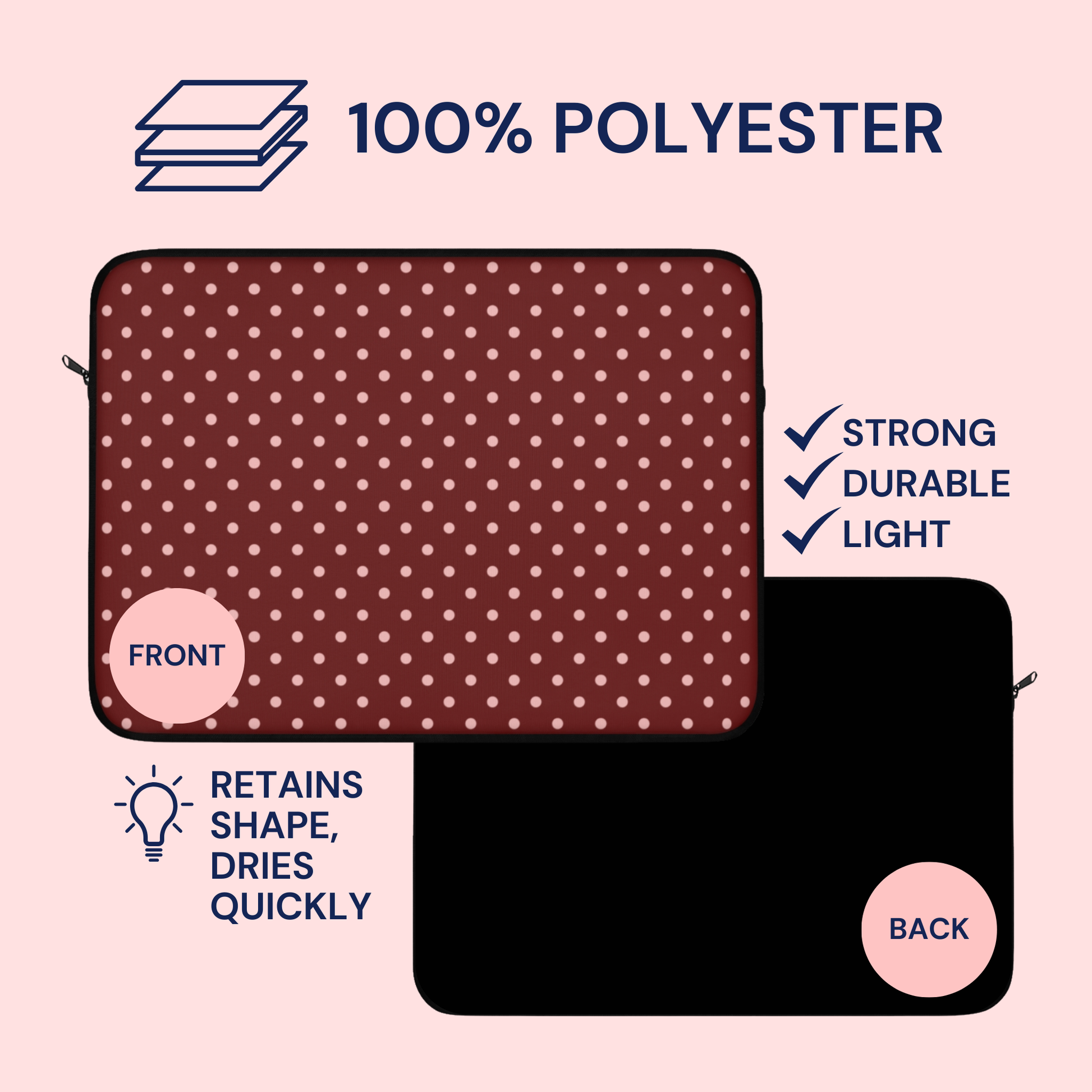 Carry your laptop with style! This high-quality sleeve is available in three sizes to protect your laptop from scratches and minor impacts. Printed on one side with a black backside, edging, and zip, it's an elegant and stylish companion from day to day.