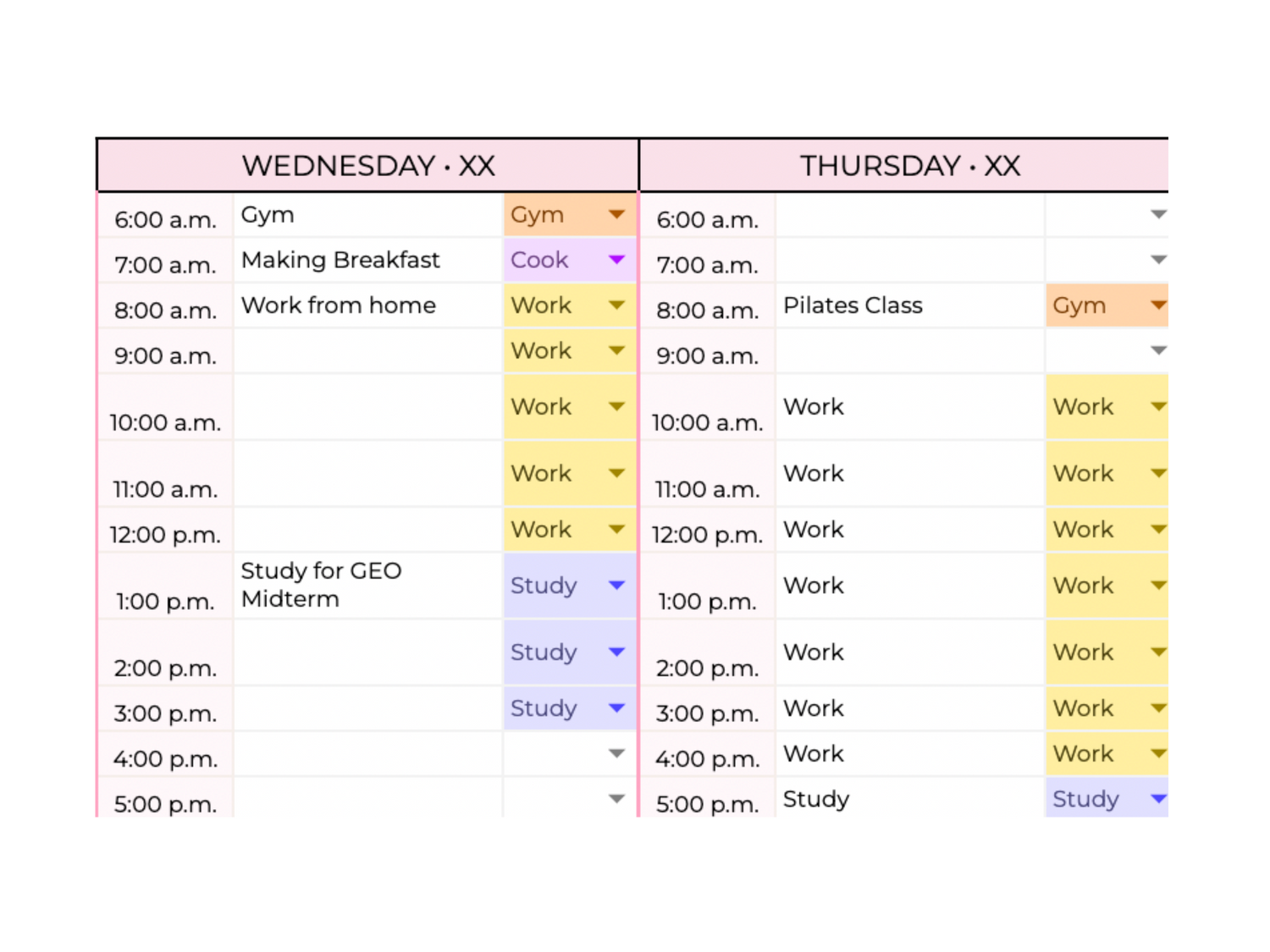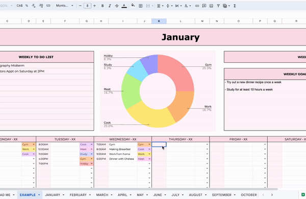 Our spreadsheet allows you to tag your tasks into categories, enabling you to identify patterns and trends in your time allocation.