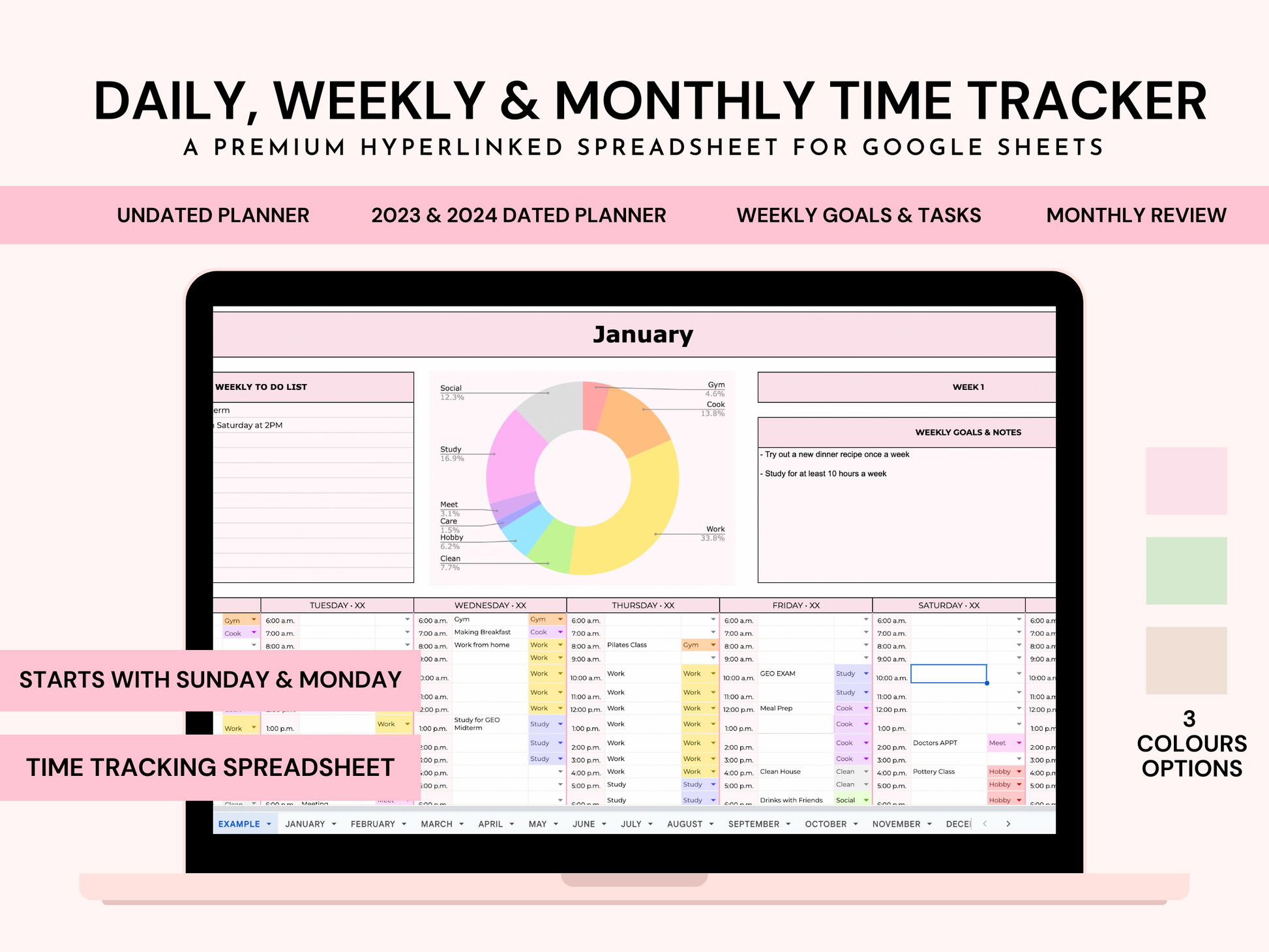 Daily, Weekly & Monthly Time Tracker Spreadsheet