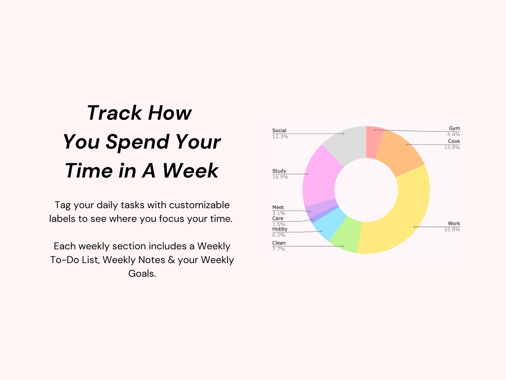 Our spreadsheet allows you to tag your tasks into categories, enabling you to identify patterns and trends in your time allocation.